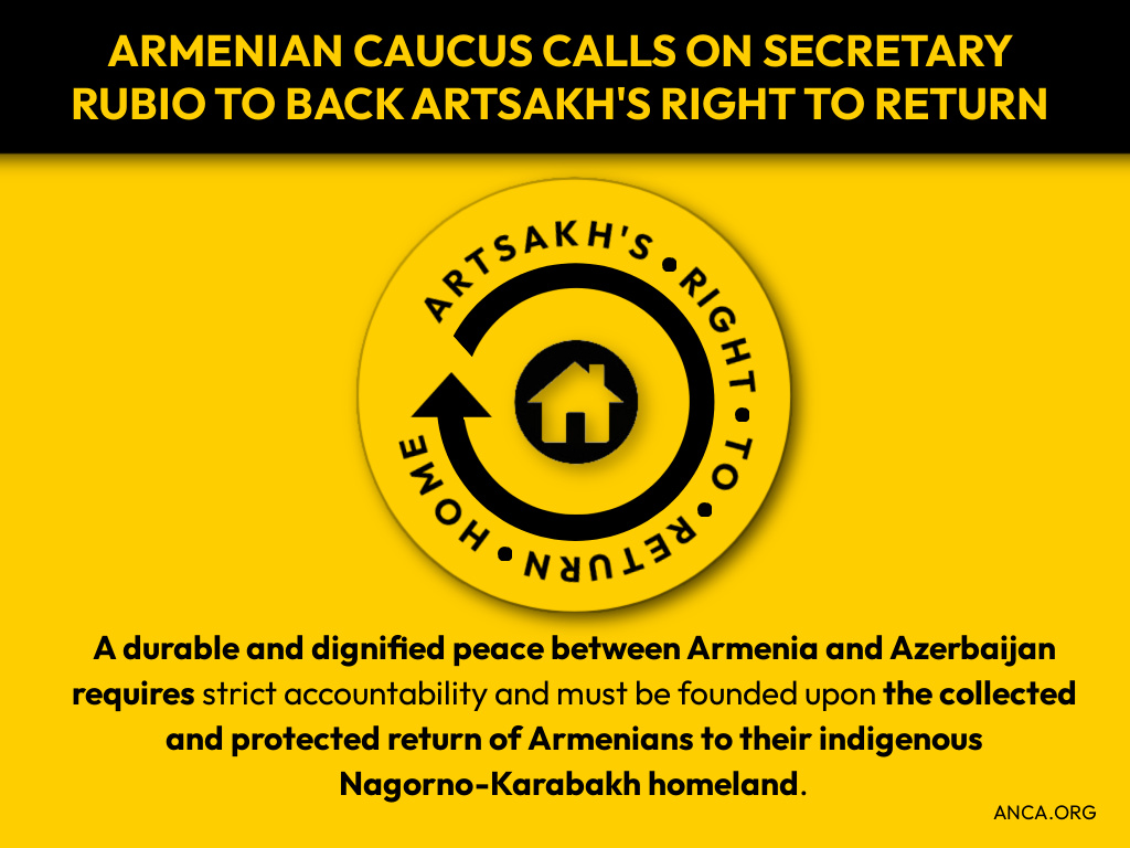 “For too long, Azerbaijan has acted with impunity – blockading Artsakh, committing genocide against its people, occupying sovereign Armenian territory, and illegally imprisoning Artsakh leaders and POWs,” said ANCA Executive Director Aram Hamparian. “The United States cannot turn a blind eye to these crimes. Secretary Rubio has an opportunity to reverse this dangerous pattern by fully enforcing Section 907, applying targeted Magnitsky sanctions, and championing the protected return of Artsakh’s Armenians to their rightful homeland.”