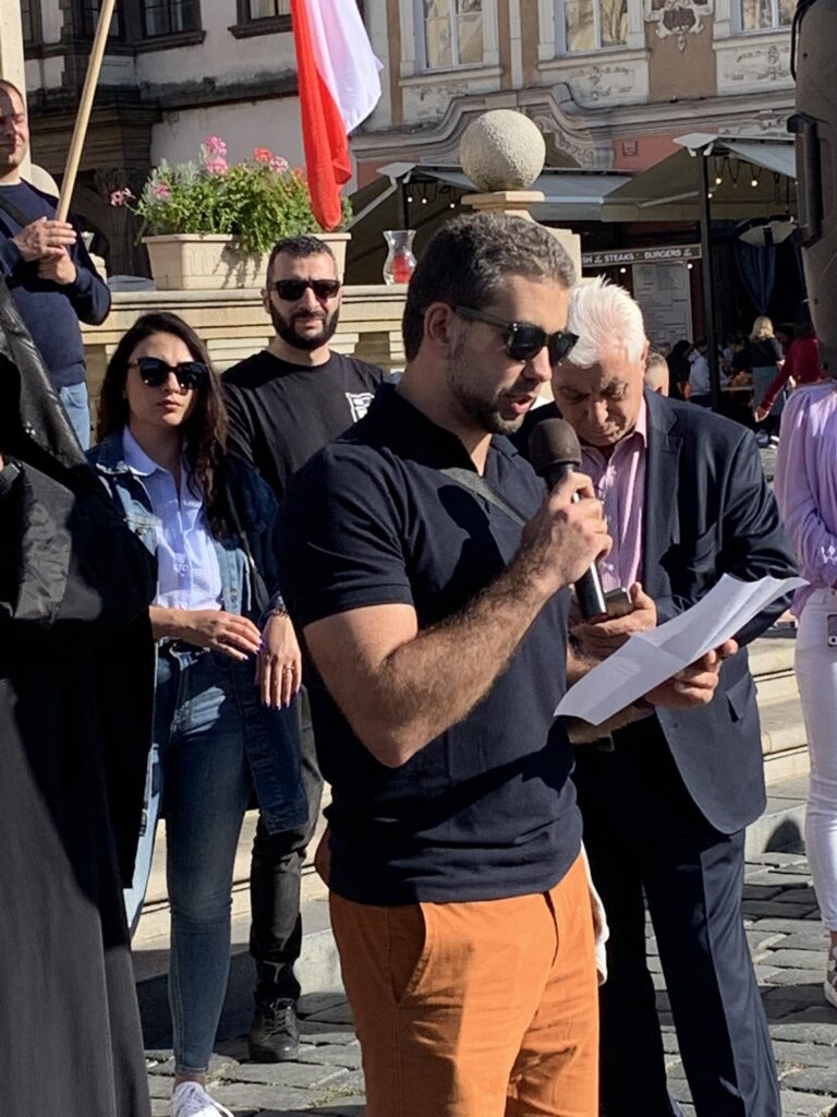 Հայ երիտասարդների կազմակերպության ներկայացուցիչ Բելլա Կնյազչյանը ընթերցեց Ադրբեջանի կողմից Արցախը հայաթափելու վերջին գործողություններին նվիրված տեղեկատվություն, նշելով, որ այդ ամենը կատարվել է ոչ միայն ռուս խաղաղապահների թողտվությամբ, այլեւ Եվրոպական Միության լռության պայմաններում։ Ադրբեջանի գազն ու նավթը չպետք է հակակշիռ դառնան մարու իրավունքներին ու կյանքին։