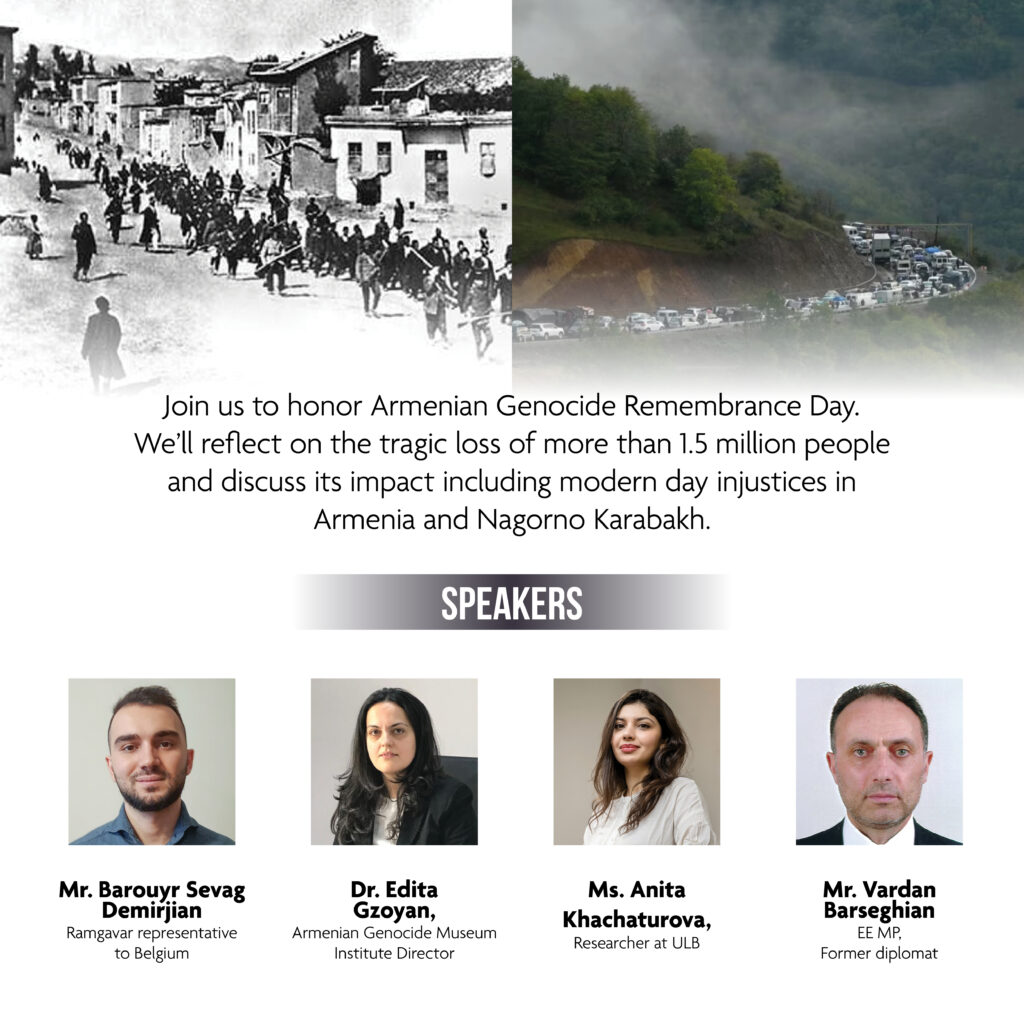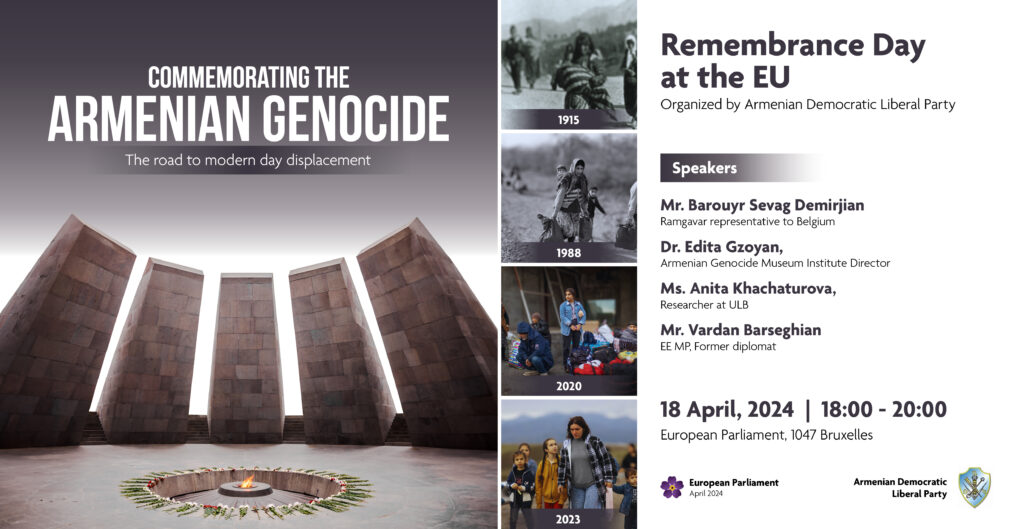 Ռամկավար Ազատական Կուսակցութեան Պելճիքայի միաւորի երիտասարդ եւ խանդավառ ընկերներու հետեւողական, գովելի ճիգերուն իբրեւ արդիւնք, Հայոց Ցեղասպանութիւնը ոգեկոչող միջացառում մը տեղի պիտի ունենայ ԵՒՐՈՊԱԿԱՆ ԽՈՐՀՐԴԱՐԱՆԷՆ ՆԵՐՍ, Հինգշաբթի Ապրիլ 18-ի երեկոյեան ժամը 6-էն սկսեալ (տեղական ժամանակով)։