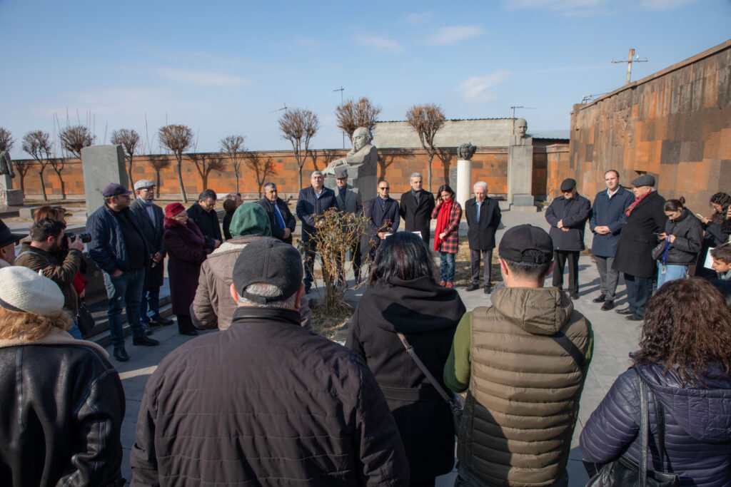 Տերյանի հուշակոթողի մոտ ծաղիկներ խոնարհելուց հետո ներկաները հանդես եկան ելույթներով։
