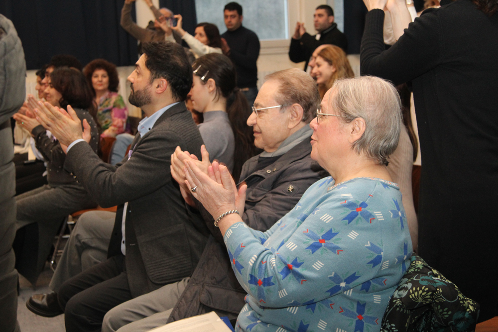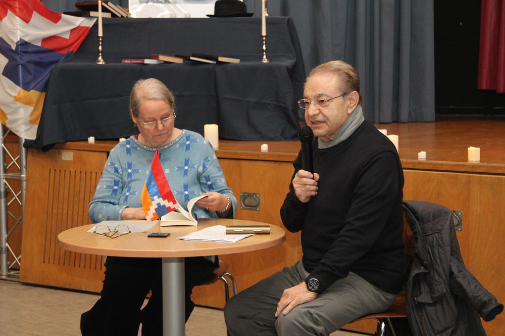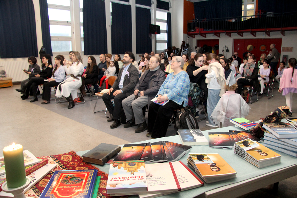 Դպրոցի ուսուցիչներից պարոն Էրիկ Բարսեղյանն իր ելույթում հանդիսատեսին պատմեց հետաքրքիր դրվագներ Թումանյանի կյանքի անցուդարձից և բեմ հրավիրեց միջոցառման պատվավոր հյուրերին՝ Գերմանիայում «Հայոց Ցեղասպանության ճանաչման հանձնախմբի» հիմնադիր անդամներ տիկին դր․, պրոֆ․ Թեսսա Հաֆմաննին և դր․ Ժիրայր Քոչարյանին, ովքեր տարիներ ի վեր զբաղված են նաև հայ գրականության գոհարները գերմաներեն թարգմանելով։ Նրանք շնորհավորեցին տիկին Վարոսյանին՝ գրքի տպագրության կապակցությամբ, խոսեցին օրվա խորհրդի մասին։ Տիկին Հոֆմաննը, որ վաղուց քաջատեղյակ է Թումանյանի կյանքին ու ստեղծագործությանը, նշեց, որ․ «Թումանյան հեղինակին թարգմանելը հեշտ գործ չէ»։ Բանախոսները երկու լեզուներով ընթերցեցին «Մի կաթիլ մեղրը» և «Հոգեհանգիստ» ստեղծագործությունները։ Դպրոցի սաները հանդիս եկան տարատեսակ ելույթներով․ պարեցին, երգեցին, արտասանեցին Թումանյանի բազմաթիվ քառյակներ։