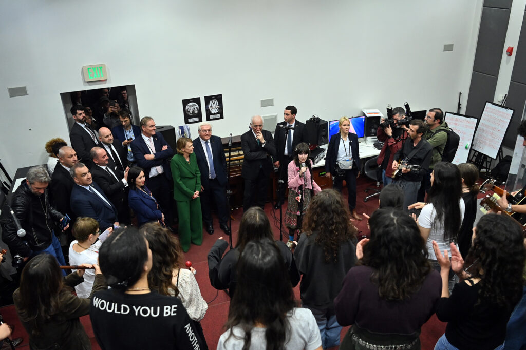 Հանրապետության նախագահ Վահագն Խաչատուրյանը Գերմանիայի նախագահ Ֆրանկ-Վալտեր Շտայնմայերի և վերջինիս տիկնոջ՝ Էլկե Բուդենբենդերի հետ այցելել է Թումո ստեղծարար տեխնոլոգիաների կենտրոն: