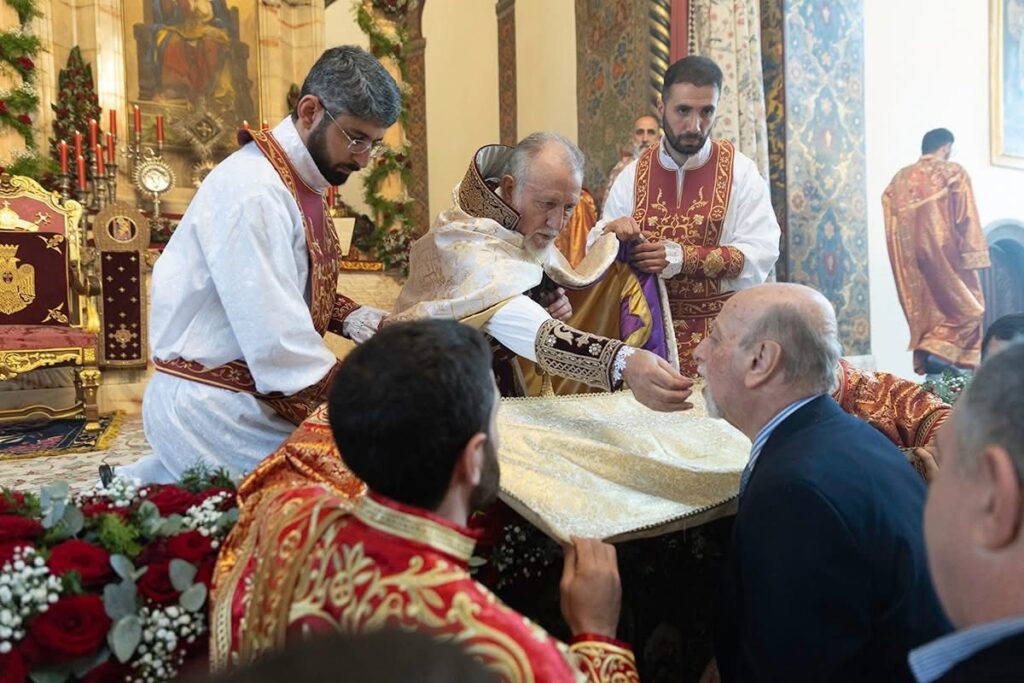 Վեհափառ Հայրապետին որպես առընթերականեր սպասավորում էին Մայր Աթոռ Սուրբ Էջմիածնի Վարչատնտեսական բաժնի տնօրեն Գերաշնորհ Տ. Մուշեղ եպիսկոպոս Բաբայանն ու Ավստրալիայի և Նոր Զելանդիայի հայոց թեմի առաջնորդ Գերաշնորհ Տ. Վարդան եպիսկոպոս Նավասարդյանը: