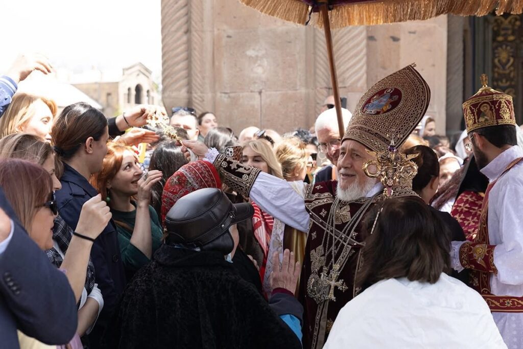Քրիստոսի Հարության կենսապարգև այս ավետիսով Մեր ողջույնն ենք բերում մեր Սուրբ Եկեղեցու Նվիրապետական Աթոռների գահակալներին՝ Ն.Ս.Օ.Տ.Տ. Արամ Ա Մեծի Տանն Կիլիկիո Կաթողիկոսին, Երուսաղեմի Հայոց Պատրիարք Ամենապատիվ Տ. Նուրհան արքեպիսկոպոս Մանուկյանին, Կոստանդնուպոլսի Հայոց Պատրիարք Ամենապատիվ Տ. Սահակ արքեպիսկոպոս Մաշալյանին, քույր Եկեղեցիների Պետերին՝ մաղթելով գահակալության արդյունավոր, արևշատ տարիներ։ Հայրապետական Մեր օրհնությունն ու բարեմաղթանքներն ենք հղում նաև մեր Սուրբ Եկեղեցու ողջ հոգևոր դասին և համայն հավատավոր Մեր ժողովրդին։ Տիրոջ սերը, օգնականությունն ու ողորմությունը թող պահապան լինեն ազգիս ու հայրենյաց: