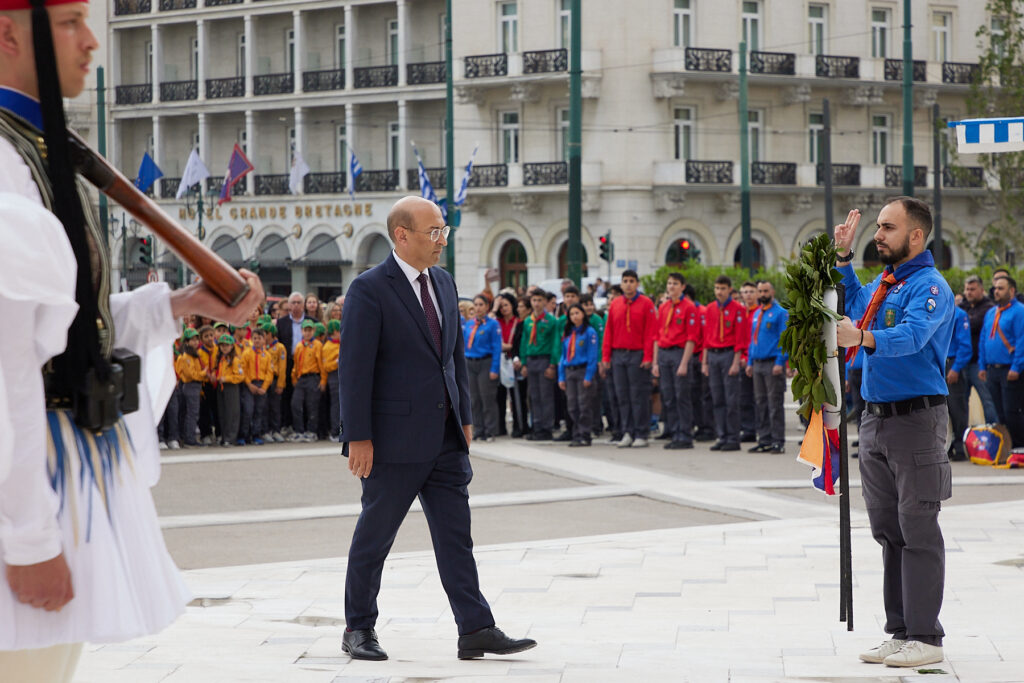 Այնուհետև միջոցառման մասնակիցները շարժվեցին դեպի Սինտագմայի «Անհայտ Զինվորի» հուշարձան, որտեղ զետեղվեցին ծաղկեպսակներ՝ ի հիշատակ 1915 թ․Հայոց ցեղասպանության զոհերի։