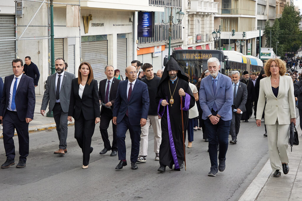 Միջոցառմանը ելույթներով հանդես եկան Հովհաննես Ղազարյանը, Հունաստանի կառավարության անունից արտաքին գործերի փոխնախարար Իոաննիս Լովերդոսը և Հունաստանի խորհրդարանի կողմից Աթանասիոս Պլևրիսը։ Ողջույնի խոսքով հանդես եկան նաև Ատտիկայի փոխնահանգապետ Քրիստինա Կեֆալոյաննին։
