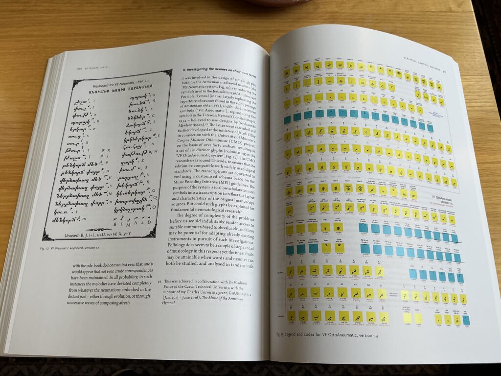 Հ. ԻՒ. Նոր հրատարակուած երկրորդ հատորը Յունաց, Ղպտեաց եւ Հրէից աւանդութեանց կողքին կը պարունակէ Հայոց աւանդութեան նուիրուած գլուխ մը (էջ 183-217), զոր հեղինակեցի համավարակի ամիսներուն։ Իսկ առաջին հատորը ամբողջովին նուիրուած է Լատինական աւանդութեան բազմազան դրսեւորմանց։ Իսկ Անգլերէնէն զատ՝ կան գլուխներ որոնք Ֆրանսերէնով կամ Իտալերէնով գրուած են, ականաւոր մասնագիտաց կողմանէ, որոնց անունները քաջածանօթ են երաժշտագիտական շրջանակներէ ներս։