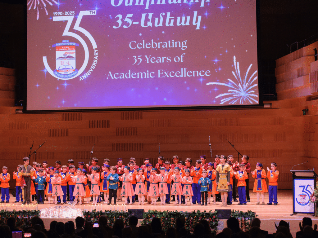 ՀԲԸՄ «Ալեքսանդր» տարրական դպրոցի աշակերտները դպրոցի 35-ամյակին նվիրված համերգի ժամանակ։