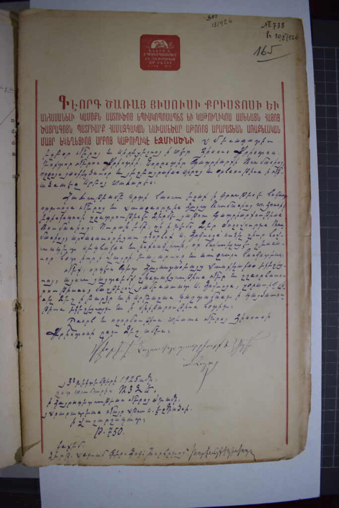 յԱրարատեն Մայր Աթոռ Ս. Էջմիածնի,