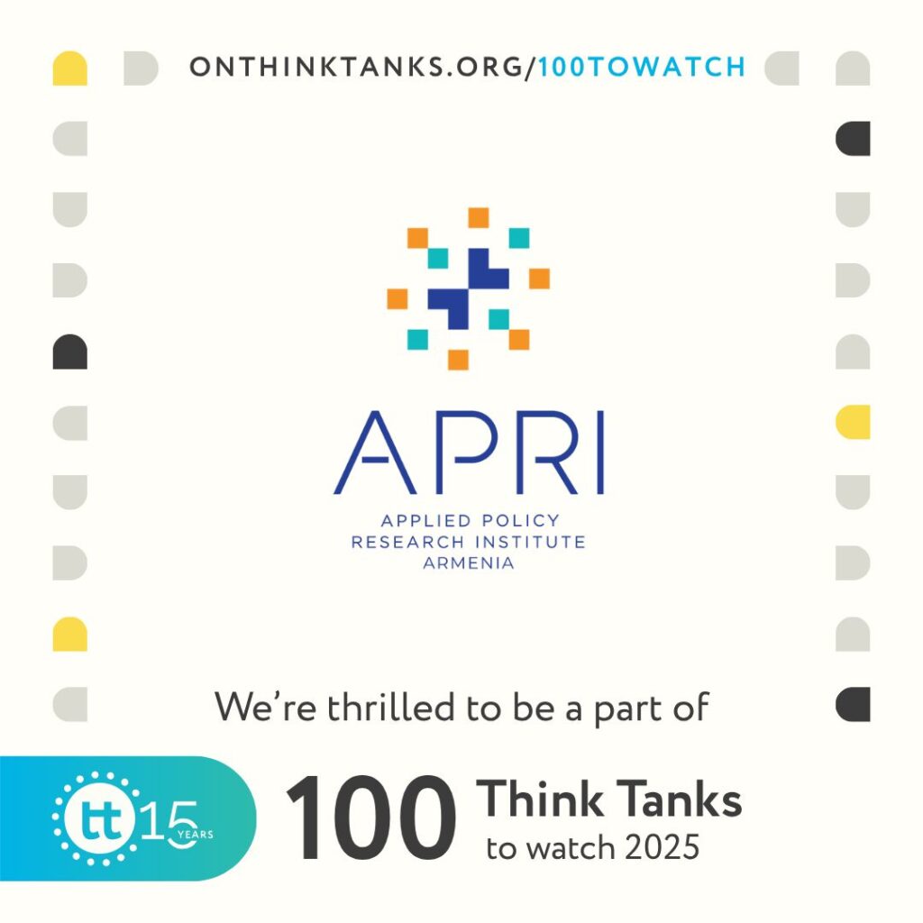 ԱՊՐԻ Արմենիան (Հայաստանի կիրառական քաղաքականության հետազոտական ինստիտուտը) «On Think Tanks»-ի կողմից ընդգրկվել է «100 վերլուծական կենտրոններ, որ արժե հետևել» ցուցակում՝ միանալով այնպիսի ճանաչված ինստիտուտների ցանկին, ինչպիսիք են «Brookings Institution»-ը, «Chatham House»-ը, «Istituto Affari Internazionali»-ը, «IFRI»-ն, «Bruegel», «the Stockholm International Peace Research Institute»-ը, and «ODI Global»-ը։