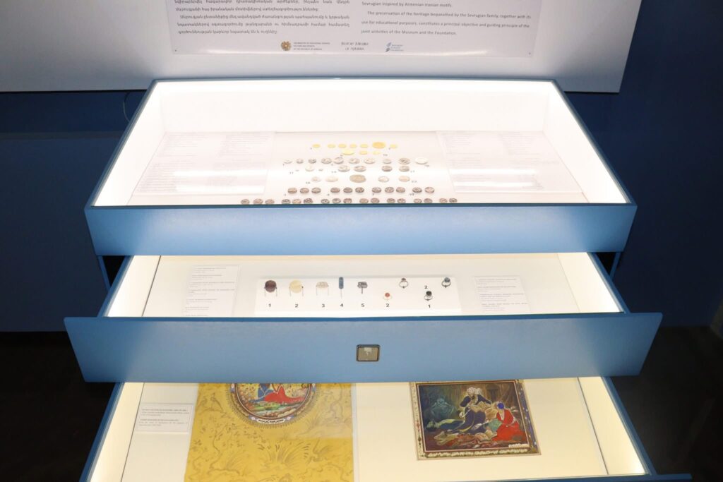 «Սևրուկյան» հիմնադրամի հետ ակտիվ համագործակցության շնորհիվ թանգարանին են նվիրաբերվել շուրջ 2000 արժեքավոր ցուցանմուշներ, որոնք ներառում են Անդրե Սևրուգյանի հայ-իրանական մոտիվներով կատարված ստեղծագործություններից և Էմանուել Սևրուգյանի հազարավոր հին դրամների հավաքածուն: Սա վերջին տարիներին հայաստանյան թանգարաններին նվիրաբերված ամենամեծաքանակ հավաքածուն է։ Ցուցադրության շրջանակում ներկայացված են նվիրաբերված հավաքածուից հին և արժեքավոր մետաղադրամներ՝ հին հունական, փոքրասիական և արևմտաեվրոպական միջնադարյան եզակի նմուշներ, ինչպես նաև մի շարք կնիքներ։